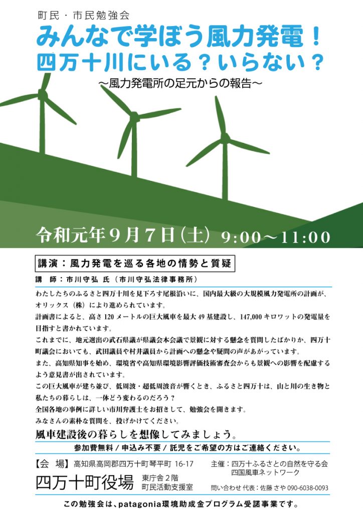 四万十町役場東庁舎で行われた風力発電についての町民勉強会の内容についてレポートします。講師は 市川守弘弁護士 、日本各地の環境裁判に携わっている方で、そのお立場からのご講演でした。