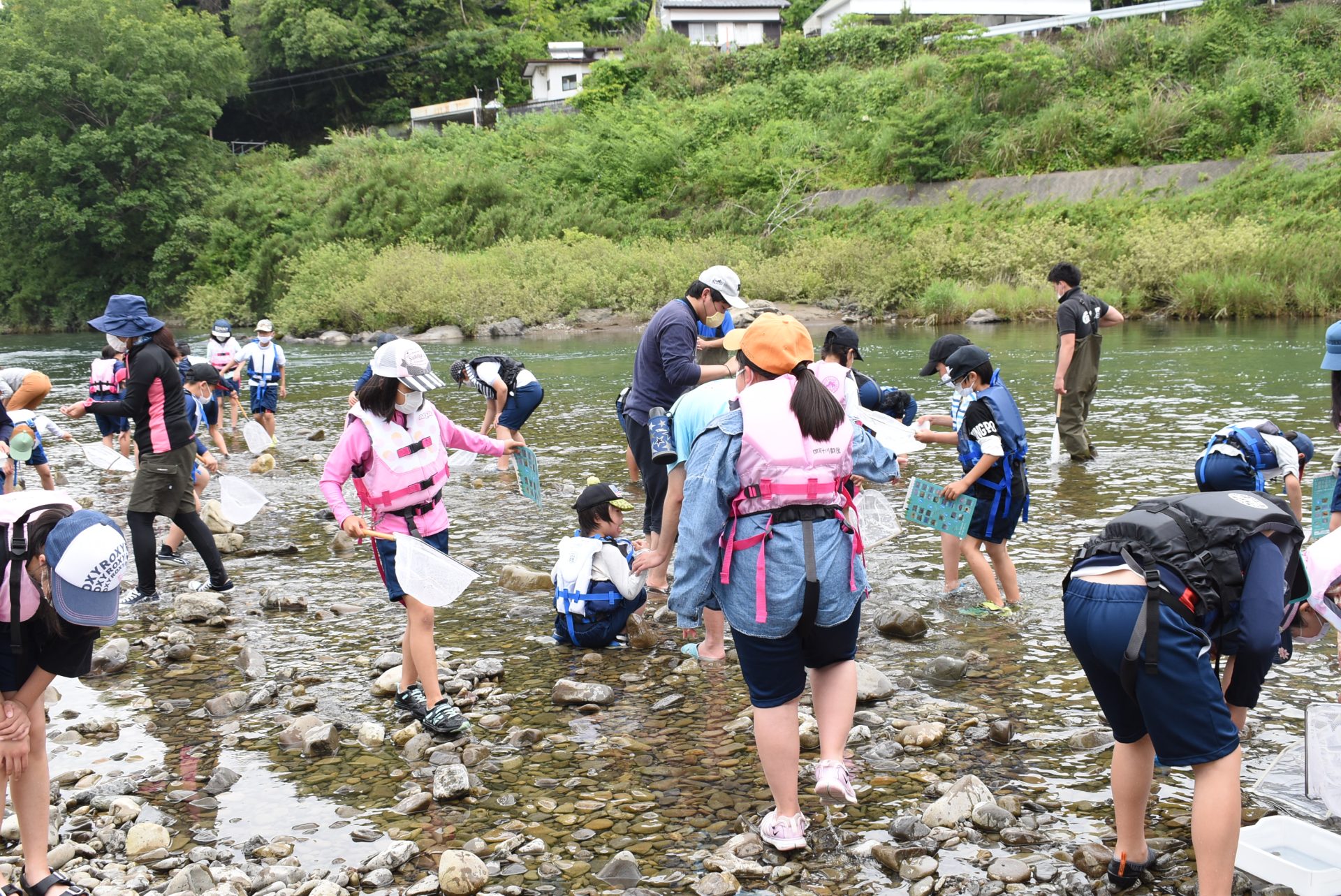 四万十町立影野小学校の5,6年生と一緒に、影野小学校の裏にあるビオトープと隣に流れる谷川を観察してきました。